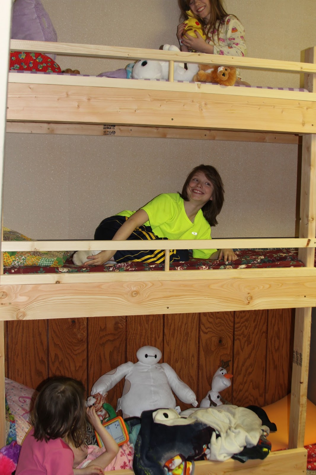Bubs and Ange and their family got here tonight. They were also able to stop and pick up the Internet box from Mark. The kids were very happy to sleep in the bunk beds. Even Millie had a spot. They were so cute! Abby slept with her parents in the other bed.